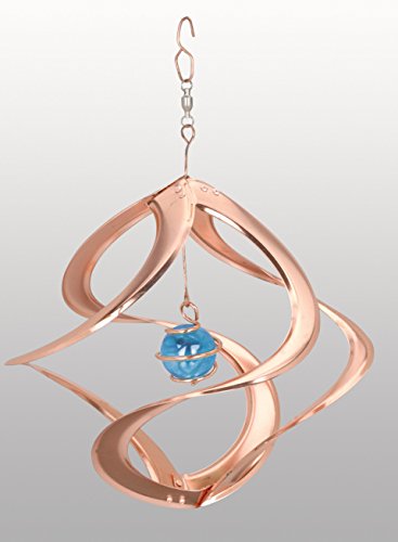 Cosmix spinner with single glass planet is 11 inches long. Cosmix spin in the wind with the slightest breeze. Handcrafted copper plated metal these showpieces will transform your garden patio deck and home into a gallery of motion and beauty. Quality made for long and beautiful life. Handcrafted of copper plated metal Baked Metal Clear Coat Includes S hook swivel for easy hanging and smooth spinning Single glass marble planet Red Carpet Studios custom design
