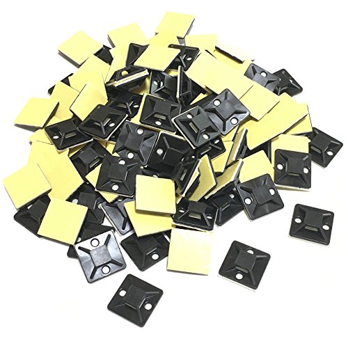 RedBeryl 選べる 結束バンド用 タイ マウントベース 粘着テープ付 インシュロック 配線 固定 ケーブルタイ (25mmx25mm 黒 100個)