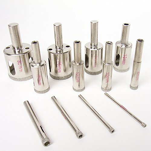 - ガラスや水槽の穴あけ、陶器やタイル等の穴あけに最適な ダイヤモンドコアビット 12本セットです♪