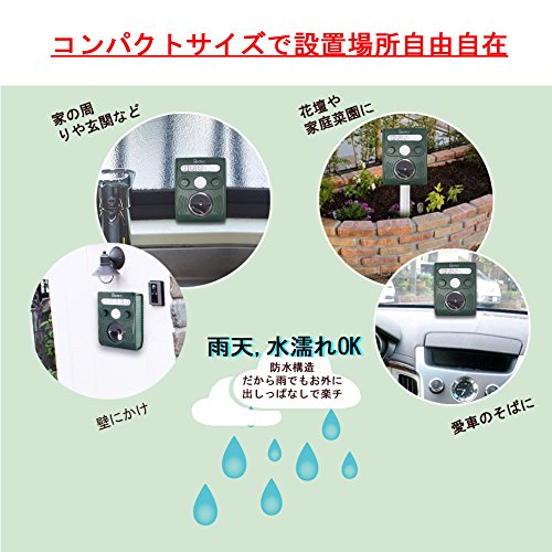 - 【防水デザイン】どんなでも悪天気対応でき、屋内にはもちろん野外にも使える。嫌な動物を追い出す。