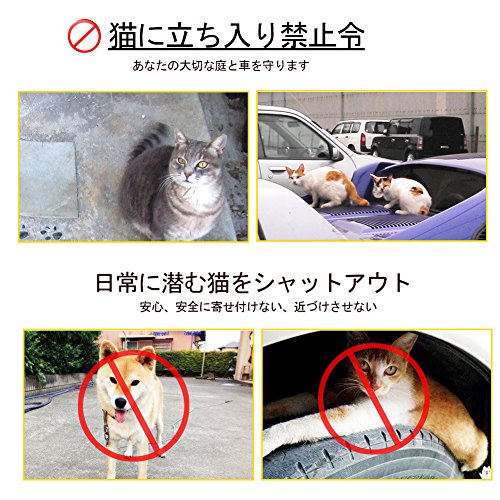 - 【超音波とLEDライト】超音波とLEDライトで動物の被害(フン害、騒音、毛、臭い匂い、愛車をきずつけなど)を軽減する。赤外線センサーでネコの動きをキャッチし、不快な超音波を放射して猫を払い出す