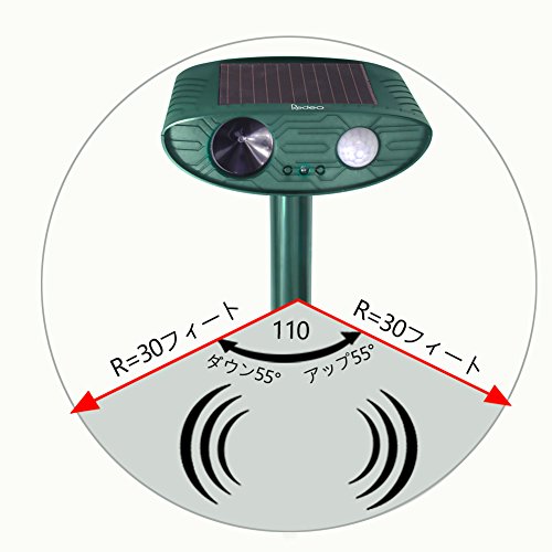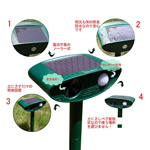 Redeo 動物撃退 猫よけ センサー 超音波 害獣対策 猫犬退治 害獣撃退 ソーラー式 動物被害を軽減 防滴 簡単設置 猫、犬、ネズミ、キツネ、ハト、カラス、コウモリ、げっ歯類など対応