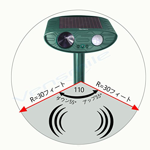 - 21KHZ—25KHZの威力で猫駆除:頻度の高い超音波で野良猫、ネズミ、犬など撃退、人道的な方式で動物を特定の地方から追い出す。動物の侵入、被害を防ぎ!!
