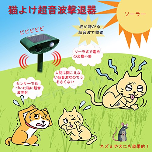 - 便利な動物撃退器:超音波で猫よけ ソーラー式で刺しだけで猫撃退!!機械が操作が苦手な方もすぐに使える猫対策装置だ。