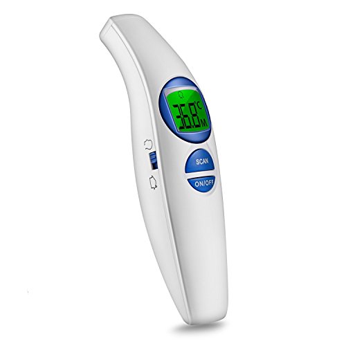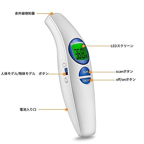 - 測定範囲:体温(32 °C ~42.9°C)、物体温度(0°C ~100°C)、検温スピードはわずか1秒で、おでこや耳や脇の下など箇所で簡単に測ることができ、室内の温度を測ることも簡単です。