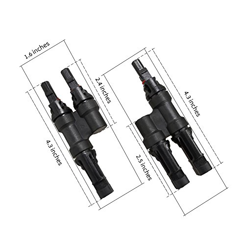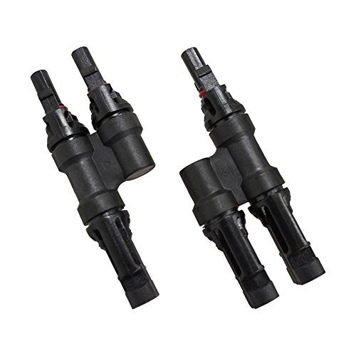 Renogy MC4支店コネクタは、ソーラーパネルとの間に並列接続するために使用されています。ペアとして販売され、これらの「Y-コネクタは、「あなたのバッテリーのサイズに合わせてパネル構成の電圧を維持します。これらのコネクタは、MC4コネクタ付きのみ互換性があり、男性1(MMF)と一人の女性(FFM)接続が付属しています。