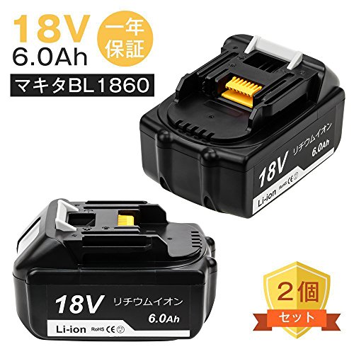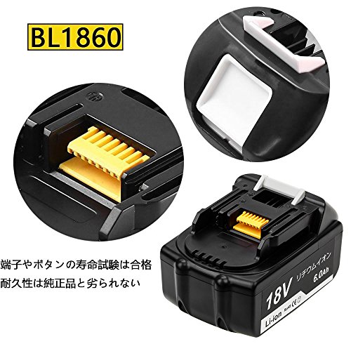 18v バッテリー BL1860 6.0Ah 18V BL1830 BL1840 BL1850 BL1860b 対応互換バッテリー リチウムイオンバッテリー 大容量 2個セット 黒
