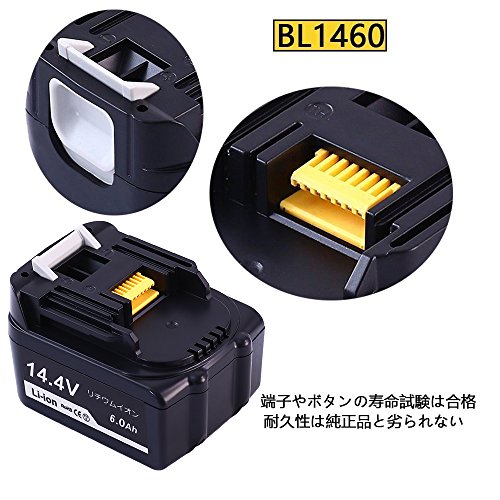 - 【商品仕様】bl1460 マキタ 14.4v バッテリー 6.0ah マキタ互換バッテリー電圧:14.4Ⅴ 容量 6.0Ah (6000mAh) 種類:リチウムイオンバッテリー動工具用電池