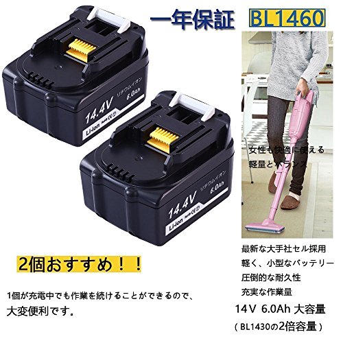 BL1460 マキタ 14.4 バッテリー 6.0Ah 2個セット マキタBL1430 BL1440 BL1450対応可能 6000mAh 大容量 リチウムイオン電池 1年保証