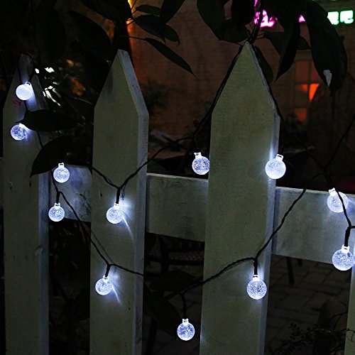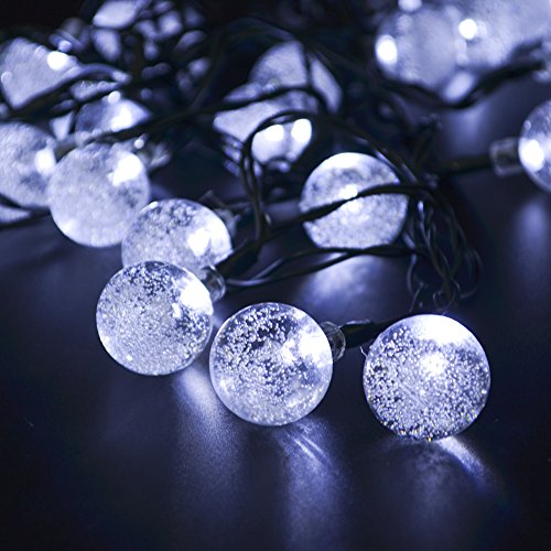 CrazyFire 30球6mソーラー LEDクリスマスイルミネーションライト 屋外 防雨 パーティー・イベント装飾品 (バブル, ホワイト)