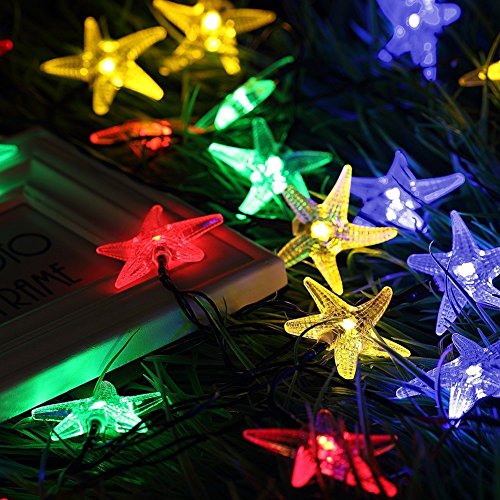 CrazyFire ソーラーLEDイルミネーションライト30球6m 海星型 4色ミックス