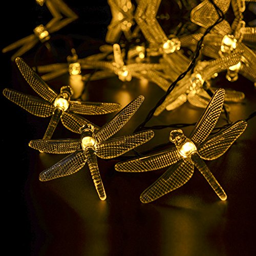 CrazyFire 30球6mソーラー LEDクリスマスイルミネーションライト 屋外 防雨 パーティー・イベント装飾品 (トンボ, イエロー)