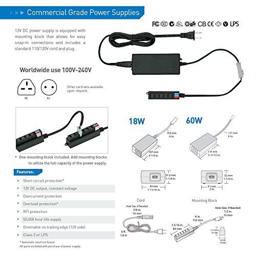 One mounting block included. The workhorses for all tresco lighting 12V dc led lighting products. Power supplies are class 2, ul safety listed/recognized with short circuit and overload protection. Employs constant voltage technology to maintain the longevity of the led fixture.
