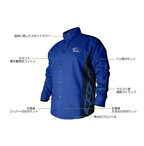 BSX ビーエスエックス フレームレジスタント コットン (難燃性コットン) ウェルディング (溶接用) ジャケット ブラック / ブルー フレームス (M)