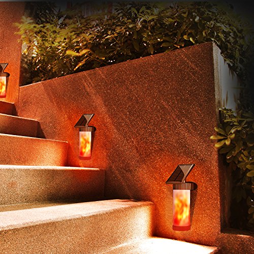 ソーラーライト Reyon炎のちらつきダンシングライト 屋外ダークセンサーオートオン/オフ防水太陽発電ライト炎光 フロントドア バックヤード 風景 パティオ ドライブウェイのための完璧な壁ライト