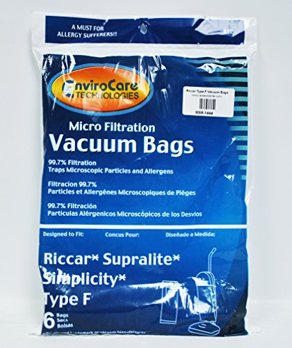 Works With: Riccar Simplicity SupraliteType F Description:Made By Envirocare 99.7% Microfiltration, 6 Bags In Pack