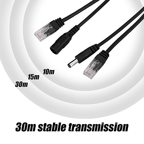 Richer-R POEスプリッタケーブル パワーオーバーイーサネット 防水12Vスルータイプ POEインジェクタスプリッタアダプタケーブル(ブラック)