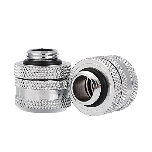 Richer-R 2Pcs G1/4圧縮継手 隠された緑色の蛍光シリコン 3年以上の寿命 OD 14MMリジッドハードチューブ水冷システムに対応