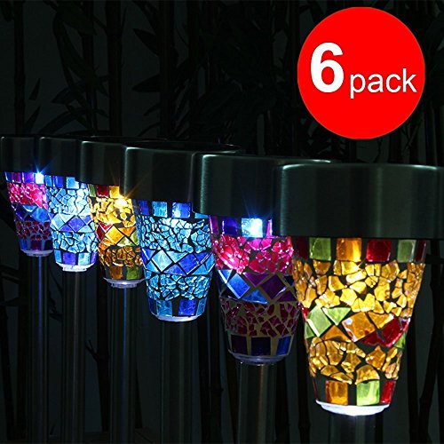 RioRand ステンドグラス風デザインのモザイクソーラーライト 自動点灯/自動消灯 ソーラーライト 電源不要 防水 ガーデンライト(6個セット)