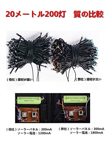RioRand® 高品質 クリスマス イルミネーション ソーラー LED 充電式 100球 ソーラーLED ライト 屋外用 防水加工 発光モードは8パターン 【赤青黄緑・計200球】 20m 光センサー内蔵 自動ON/OFF