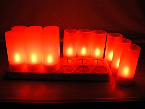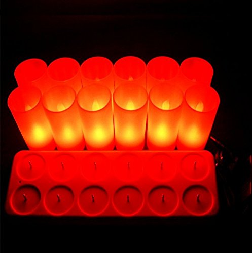 RioRand® 充電式 LEDキャンドルライト キャンドルライト LEDキャンドル 間接照明 着火不要!揺らめいて見える LEDキャンドル テーブルランプ 卓上ランプ LED蝋燭 ろうそく ゆらぎ(12個セット) (レッド)