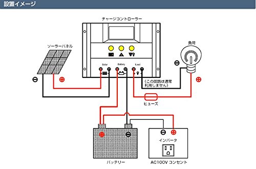 - 24V、12Vの両方に対応可能なチャージコントローラー!ソーラーパネル(太陽光パネル)で発電した電力を効率的に充電!バッテリーへの充電、放電および負荷の制御を自動的に行います。