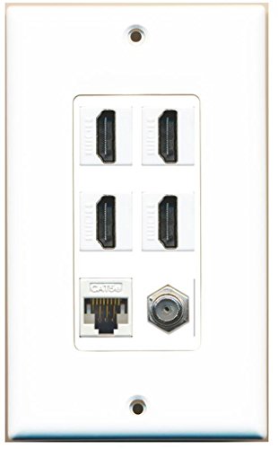RiteAV – 4 x HDMIと1 xイーサネットcat5eと1 x同軸ケーブルテレビFタイプポート壁プレートホワイト
