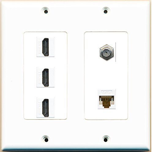RiteAV ( 2ギャング装飾) 3 HDMI同軸cat6ホワイト壁プレートホワイト