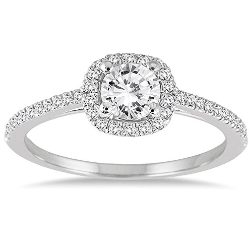 AGS Certified 3/4 Carat TW Diamond Halo Engagement Ring in 14K White Gold (K-L Color I2-I3 Clarity) [並行輸入品]
