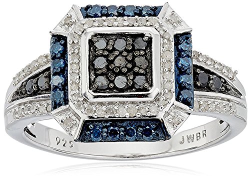 Sterling Silver with Blue and White Diamonds Square Shape Ring (1/2cttw I-J Color I3 Clarity) Size 7 [並行輸入品]