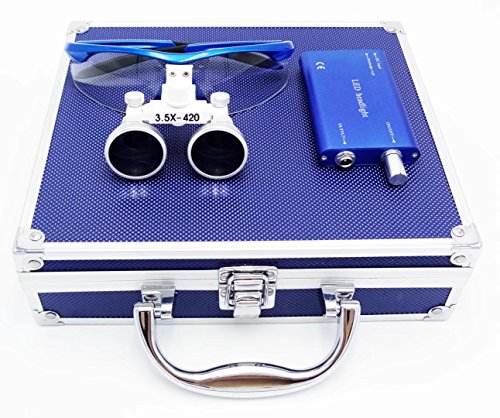 Romantic桜 3.5Xルーペ LEDライト メガネ式拡大鏡 ポータブル ケース付き ブルー