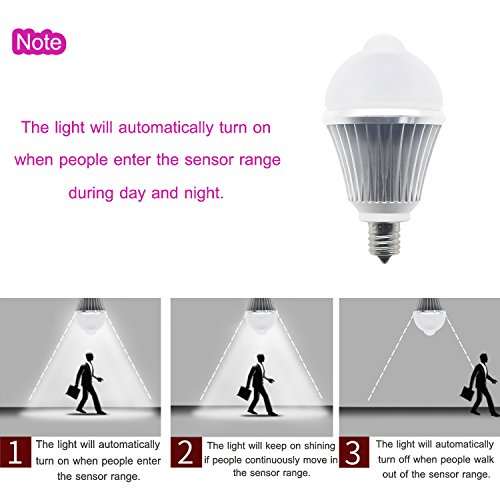 - 2。高度なPIRセンシング技術を使用するオートPIRモーション検出: 170度以内の検知エリアと3 – 5 Mの入力が動きが検出、自動的に光ります。にライトが15秒で自動消灯するセンサーの領域内のモーションが検出されます。