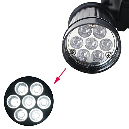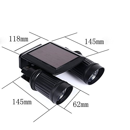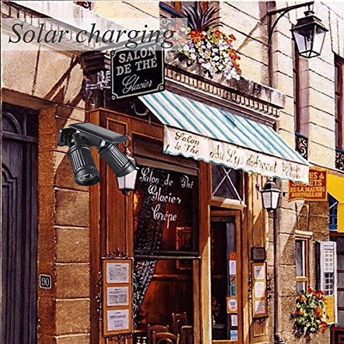 - 360° 度回転可能スポットライトとソーラーパネルが備えて、照らしたい方向や太陽の良く当たる方向へ向けられるので便利です。
