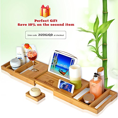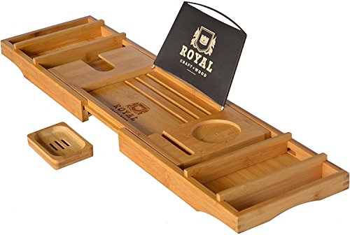 Royal Craft WoodラグジュアリーBathtub Caddyトレイ、1つまたは2人Bath andベッドトレイ、ボーナスフリーソープホルダー天然竹色)