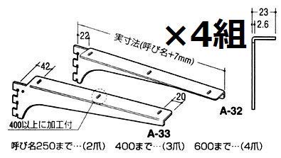 ロイヤル 木棚受 A-32/33 クローム 【400mm】 左右 2本セット (4)