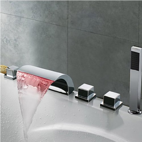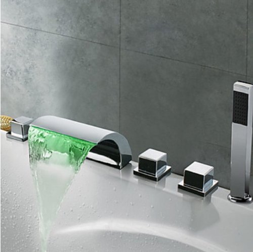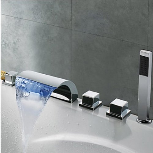Rozinsanitary LEDカラー変更ウォーターフォール浴室浴槽蛇口5点ミキサータップwithハンドシャワー