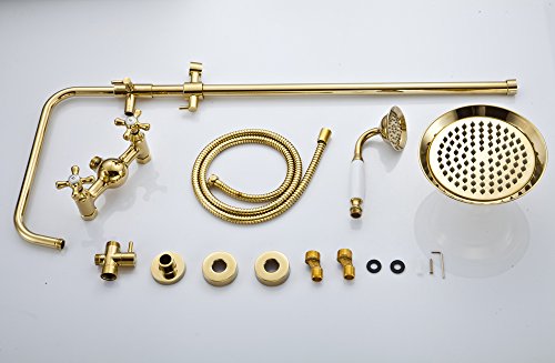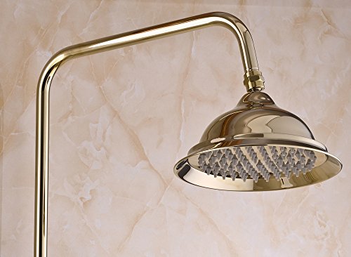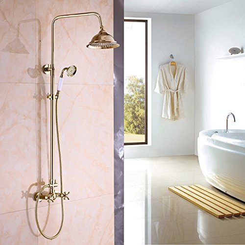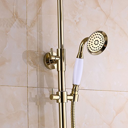 RozinゴールドPolished Exposedシャワー蛇口ミキサータップ8インチ雨シャワーヘッドセット