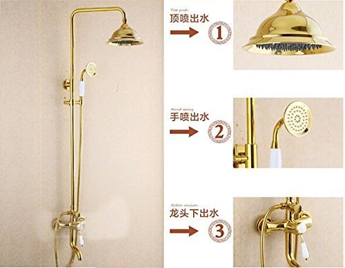 Function:Bath Shower Faucet Set;Finish:Golden Polished