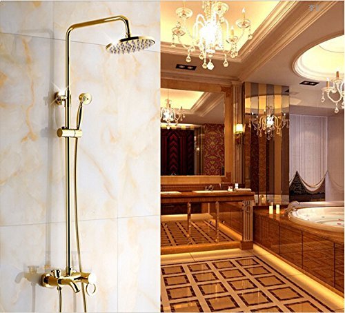 Rozinsanitary Golden Polish Shower Set Faucet Rain 8 inch Shower Head W/ Handheld Shower Single Handle Wall Mounted by ROZINSANITARY [並行輸入品]
