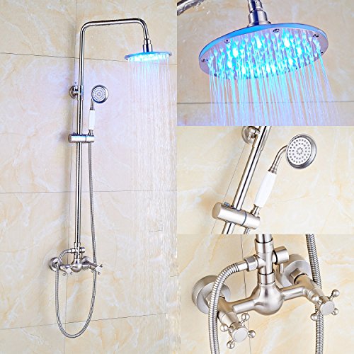 Rozinバスルーム2つノブMixing LEDライト8インチトップRainfallシャワーセットwithハンドヘルドスプレーつや消しニッケル