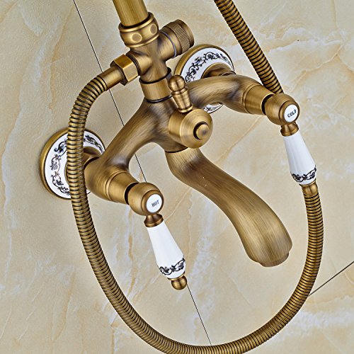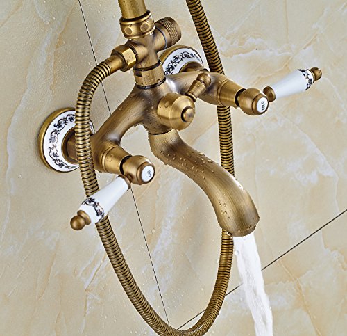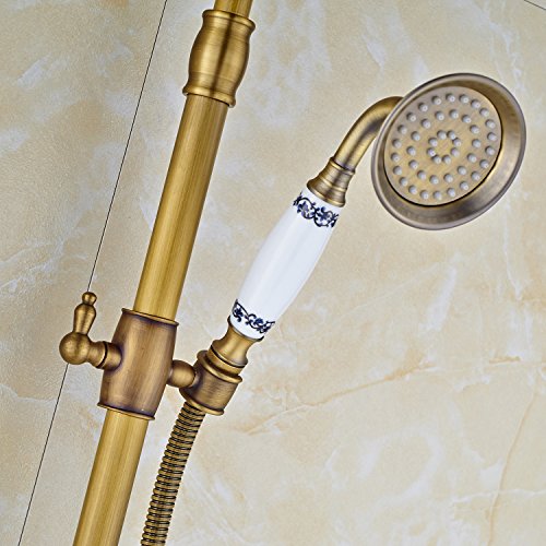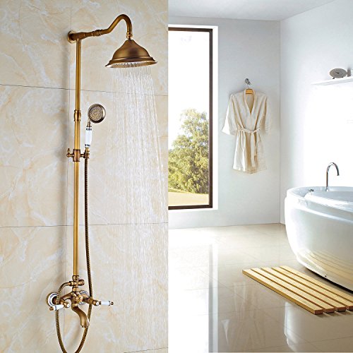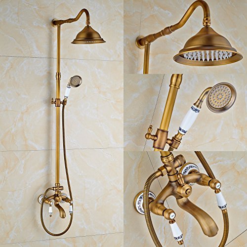 Rozinアンティーク真鍮バスルームシャワー蛇口セット8インチシャワーヘッド+ハンドスプレー