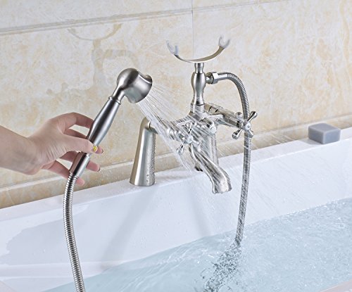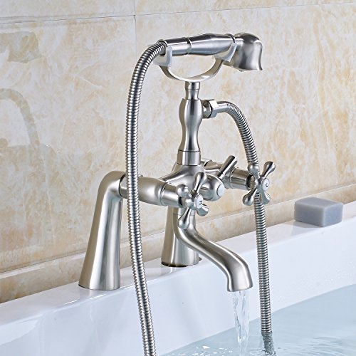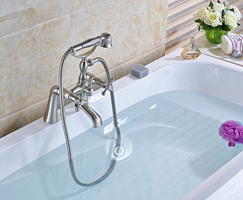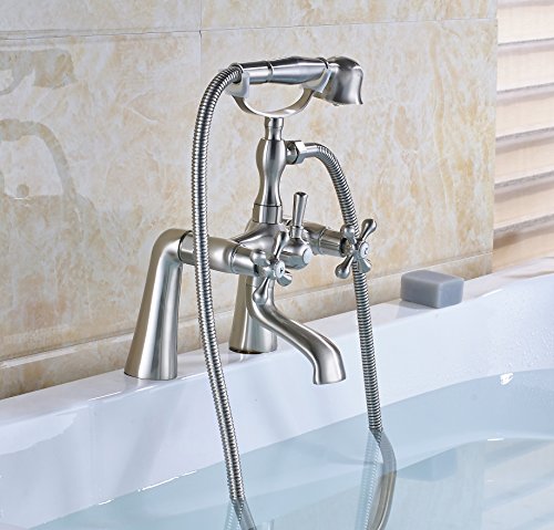 RozinデッキマウントBathtub真鍮蛇口オイルはブロンズデュアルハンドルミキサータップwithハンドシャワー RZ6111002