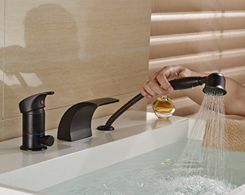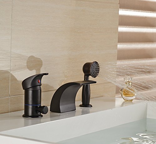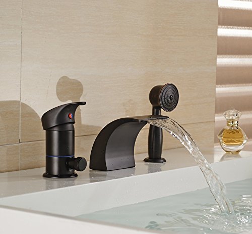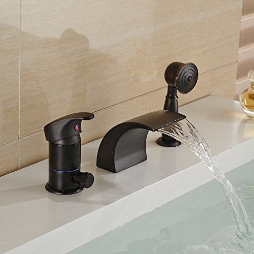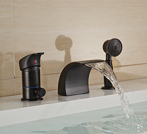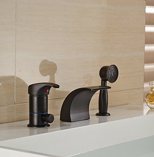 Rozin® Oil Rubbed Bronze Single Handle Bathtub Waterfall Mixer Faucet with Handheld Shower Head [並行輸入品]