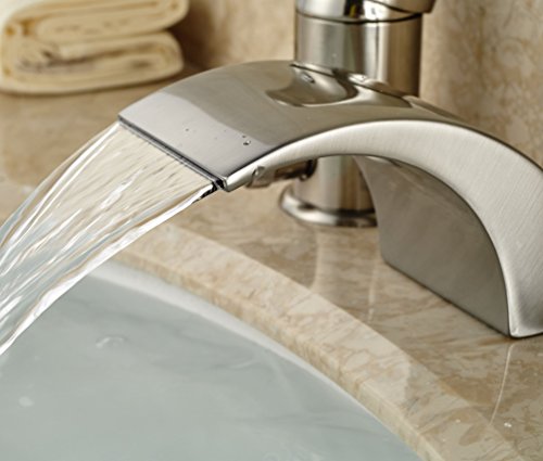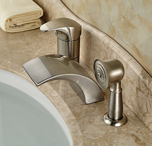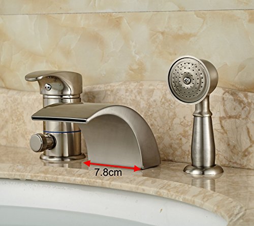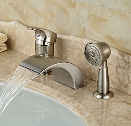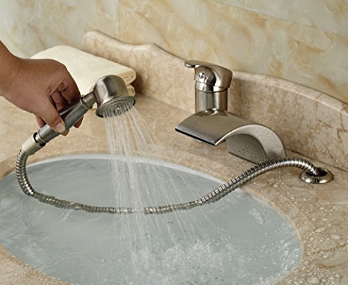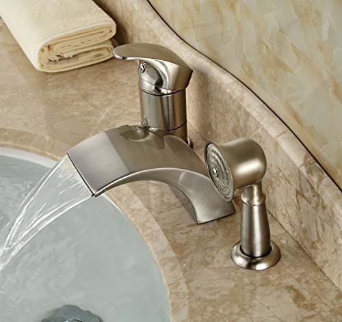 Rozin® Brushed Nickel 3pcs Waterfall Spout Single Handle Bathtub Filler Faucet with Hand Shower [並行輸入品]