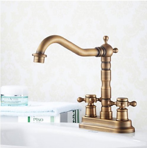 Rozinsanitary 4インチセンターセットアンティーク真鍮バスルームシンク蛇口デュアルノブBasinミキサータップ