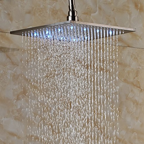 Rozin 12インチ LEDカラー 浴室用スクエアシャワーヘッド レインフォールオーバーヘッドスプレー つや消しニッケル 12-inch R5051411