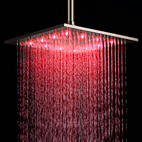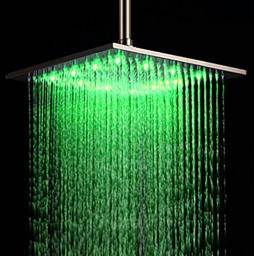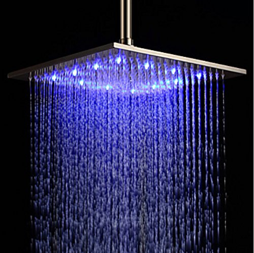 Rozinつや消しニッケルLEDカラー16インチバスルームトップスプレー正方形シャワーヘッド 16インチ