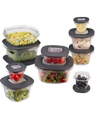 Rubbermaid PREMIER 22-piece食品セーバーストレージコンテナで設定簡単検索トップカバー、クリスタルクリアコンテナウルフグレー蓋