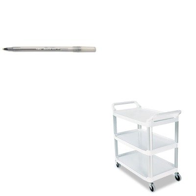 kitbicgsm11bkrcp409100 cm – Valueキット – rubbermaid-cream X TRA 3つシェルフユーティリティカート、すべての側面( rcp409100 cm )開き、Bic Round SticボールペンStickペン( bicgsm11bk )