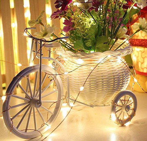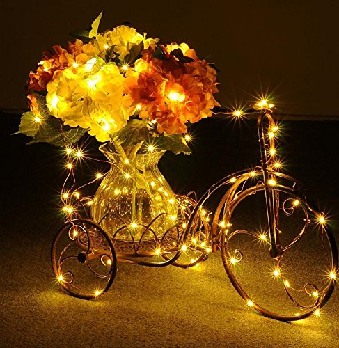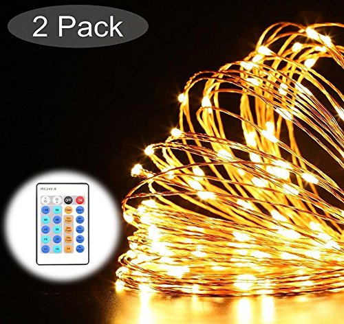 RUICAIKUN イルミネーション 防水ライト 50ft 100球LEDライト リモコン付き 屋外ガーデン クリスマスツリー飾り LED ジュエリーライト LED ワイヤーライト 飾り/電飾 (ウォームホワイト)